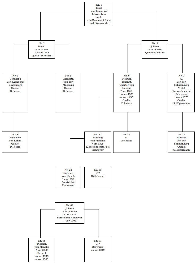 Vorfahrenliste des Jobst von Kanne zu Löwenstein,