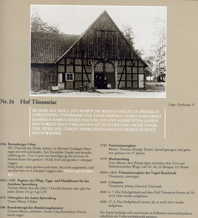 - Franz Heinrich Cord-Bentkamp (Bentkamp-Stammbaum), * 15.5.1749, oo Nov. 1772 in Brackwede mit Margarethe Doerthe Grundmann (Bentkamp-Stammbaum) in 1. Ehe, oo 28.7.1793 in Brackwede mit Maria Ilsabein Mühlenweg (Bentkamp-Stammbaum) in 2. Ehe